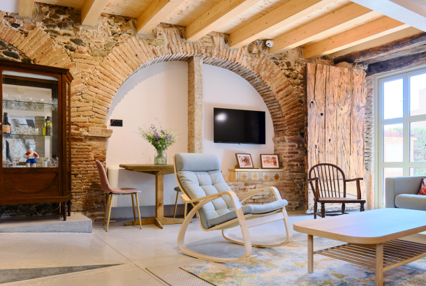 El hotel Molí Cardedeu es un antiguo molino medieval con 800 años de historia que dispone de 5 habitaciones: tres dobles, una triple y un apartamento para cuatro personas completamente equipado con cocina, nevera y lava vajillas.